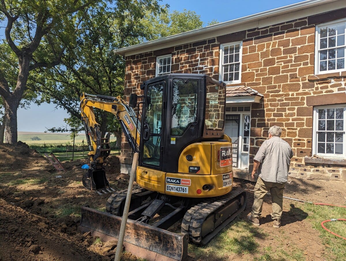 This historic masonry restoration project required careful planning and precision to stabilize the aging stone foundation while preserving the structure’s historic character. The existing foundation had deteriorated in several sections due to age and long-term moisture exposure. Our team carefully excavated the failing areas, removed damaged stone, and sourced locally quarried material to closely match the original construction. Larger stones were hand-split and shaped to reflect the original building methods before being precisely set into place.